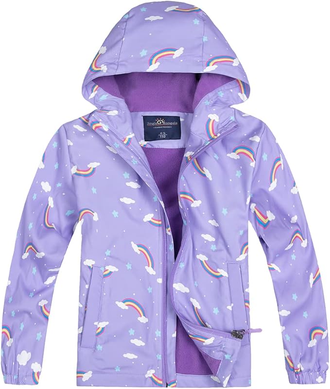 Kids Waterproof Rain Jackets Lightweight Raincoats Fleece & Knitted Lining Hooded Windbreaker for Boys Girls