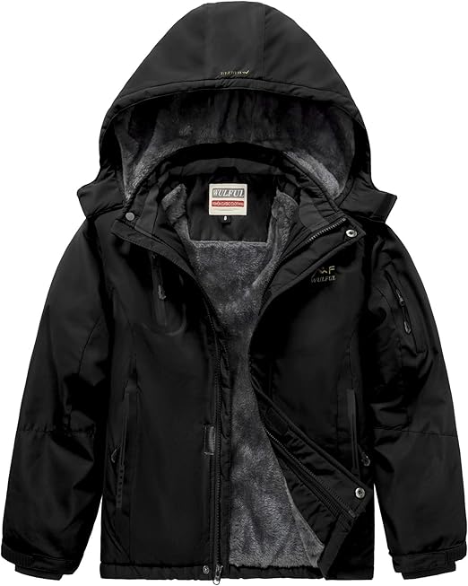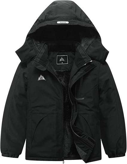 Boy's Fleece Winter Coat Waterproof Puffer Jacket Warm Winter Outerwear Jackets with Hood