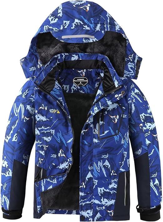 Boy's Waterproof Ski Jacket Warm Fleece Hooded Winter Snow Coat