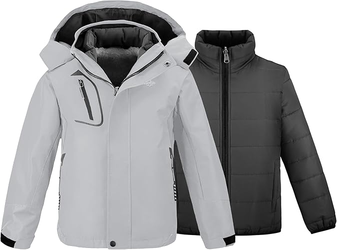 Boy's Ski Jacket Waterproof 3 in 1 Snow Coat Warm Fleece Winter Coat