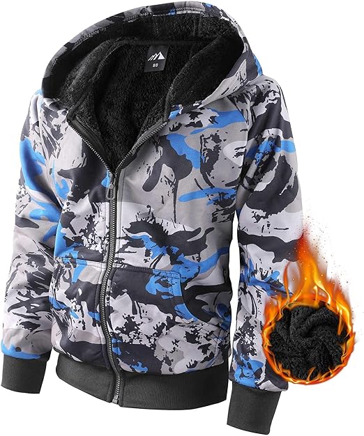 Boy's Zip Up Hoodie Heavyweight Winter Sweatshirt Fleece Sherpa Lined Warm Jacket