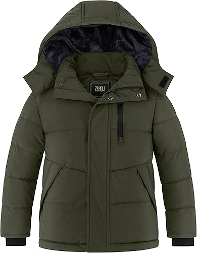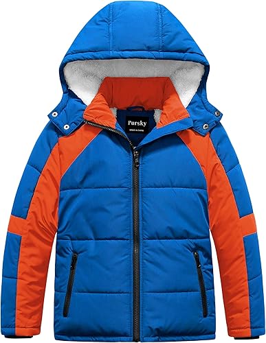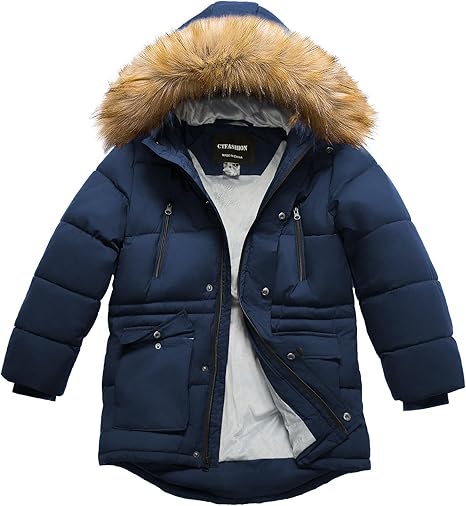 Boy's Warm Winter Coat Water Resistant Sherpa Outerwear Puffer Jackets With Removable Furry Hood