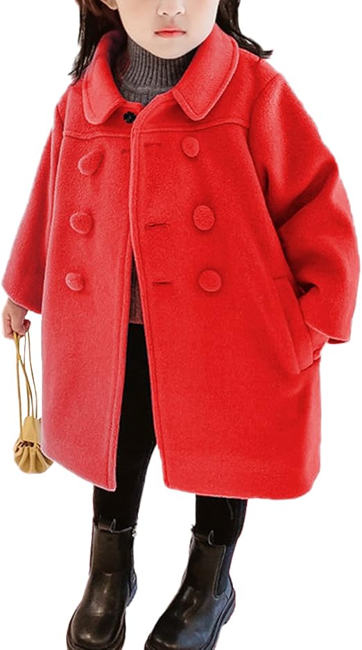 Girls Dress Coat Kids Winter Warm Jacket Long Sleeve Button Trench Coat Pocket Long Peacoat Outerwear 2-7 Years