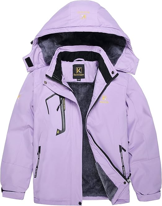 Girl's Waterproof Ski Jacket Fleece Snow Coat Windproof Warm Winter Snowboarding Jacket with Removable Hood
