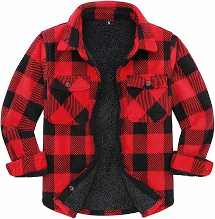 Boys Warm Sherpa Lined Buffalo Plaid Fleece Button Down Shirt Jacket