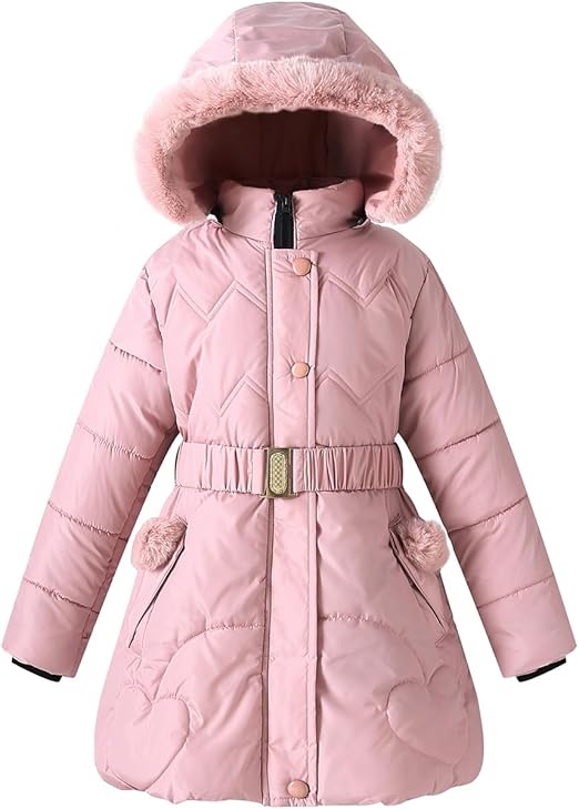 Girl Winter Coats Heavyweight Hooded Puffer Jacket Kid Parka Fleece Snow Outwear